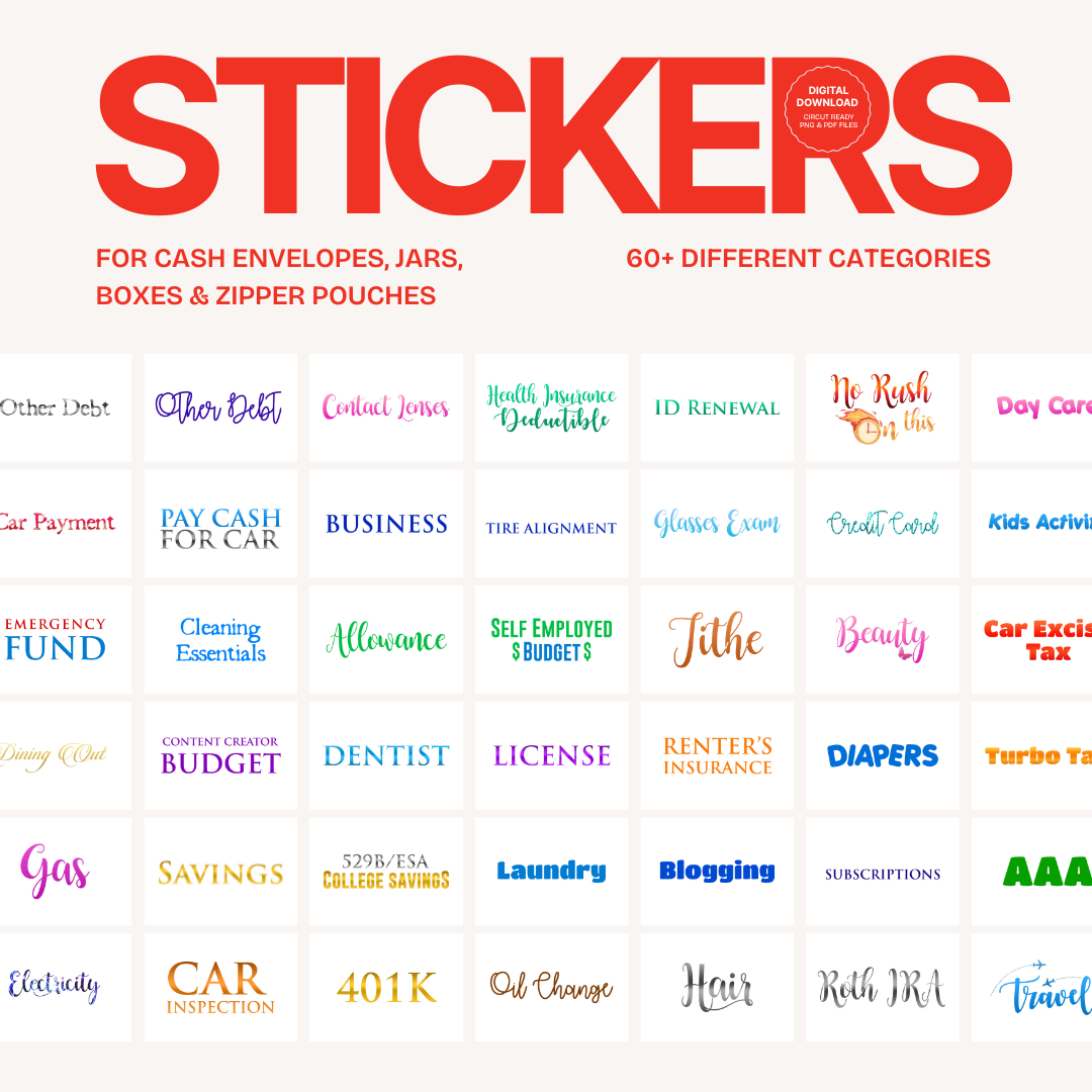 Perfect for customizing your cash stuffing envelopes!These labels are designed for easy use with cutting machines like Cricut, making them perfect for personal projects, gifts, or small DIY needs. ...